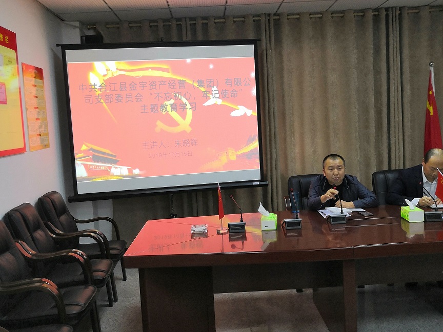 2019年10月15日合江縣金宇資產經營(集團)有限公司開展“不忘初心、牢記使命”主題教育,堅持把學習教育、調查研究、檢視問題、整改落實貫穿全過程,切實把學習教育放在首位。通過學習,進一步深化了員工對中國共產黨人初心、使命的再認識,總結了當下工作中存在的不足,明確了下一步努力的方向。