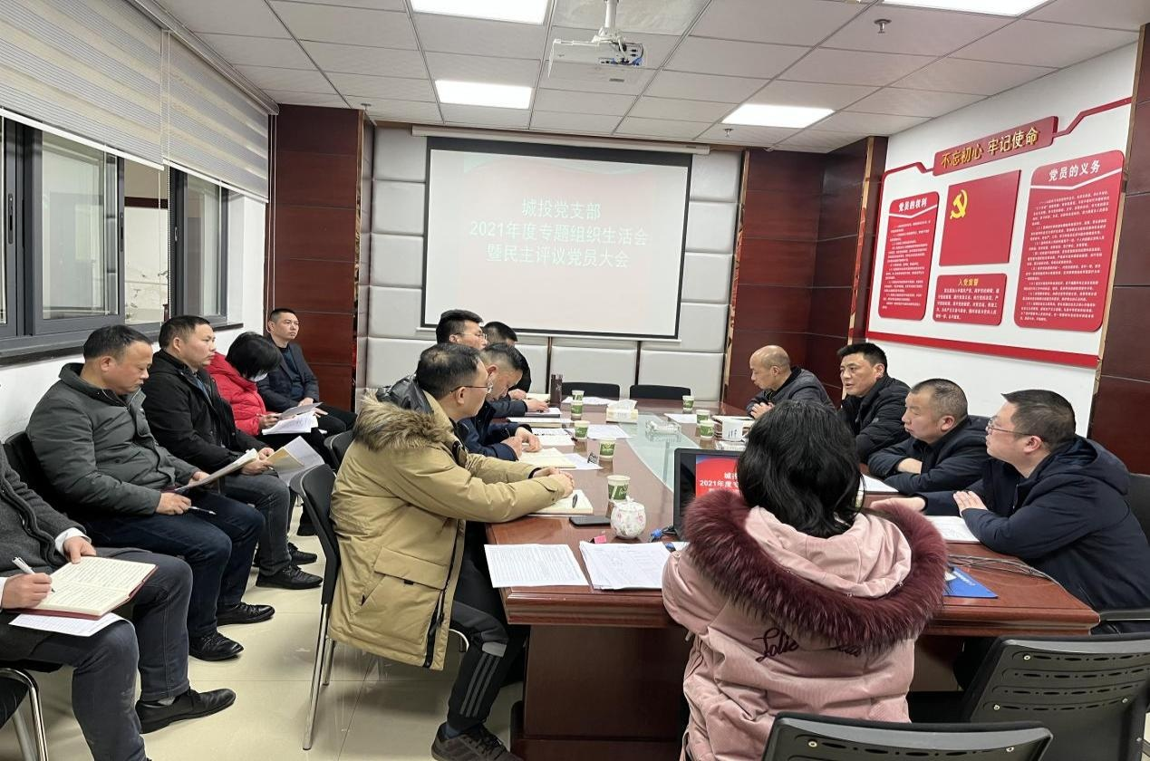 2022 年 2 月 23 日下午, 城投黨支部組織召開 2021 年度 組織生活會并開展民主評議黨...