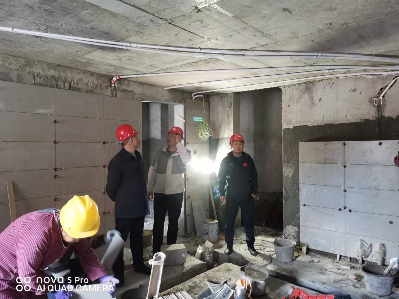 為進一步加強和落實項目安全生產工作, 近日董事長張 學彬帶隊檢查龍掛山裝飾裝修項目開展安全生產工作。 張董 一行重點排查模板、 腳手架、 施工用電、 高空作業(yè)、 受限空 間等環(huán)節(jié)存在的安全隱患, 落實防滑、 防火、 防坍塌、 防高 處墜落、防機械傷害等安全措施。
