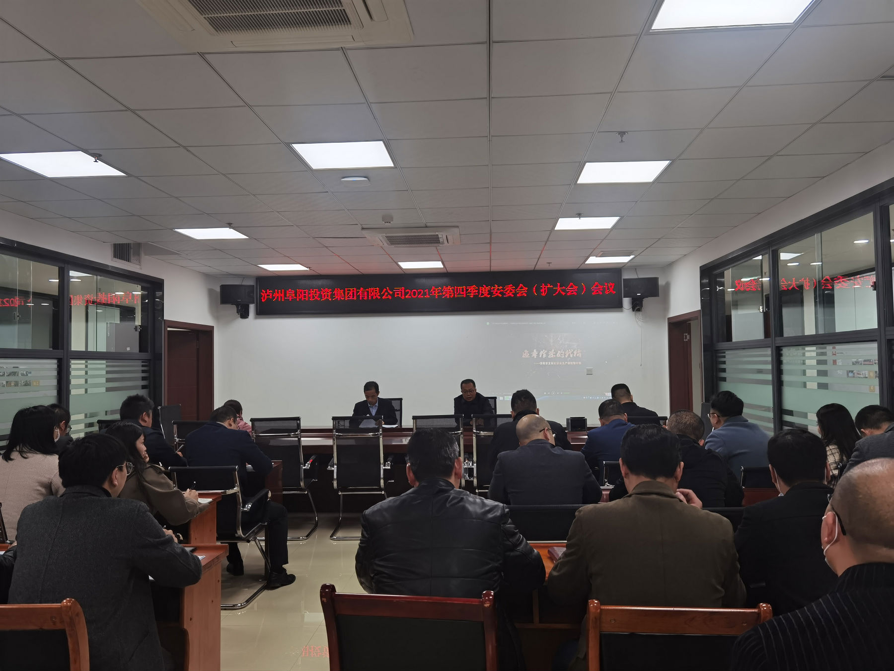 2021 年 10月28日,瀘州阜陽投資集團(tuán)有限公司召開第四季度安委員會(擴(kuò)大會)會議,會議由集團(tuán)副總經(jīng)理胡天華主持,總經(jīng)理任東財出席,各下屬公司、代管公司安全分管領(lǐng)導(dǎo)及安全員參加。