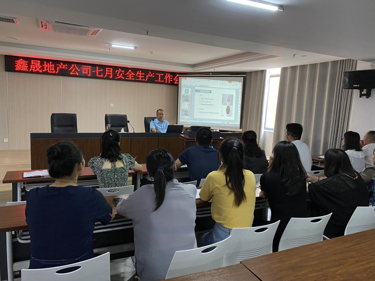 2021年7月19日,瀘州鑫晟房地產(chǎn)開發(fā)有限公司組織召開七月安全生產(chǎn)工作會(huì),會(huì)議由董事長(zhǎng)任東財(cái)主持,公司全體員工參加。
