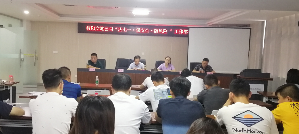 2021年6月23日,符陽文旅公司召開“ 慶七一·保安全·防風(fēng)險”工作部署會,阜陽集團副總胡天華參加會議,公司總經(jīng)理吳平主持會議,公司全體員工及龍掛山項目 參建單位項目負(fù)責(zé)人、安全管理人員參加 。