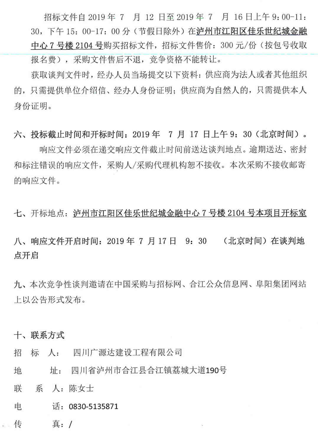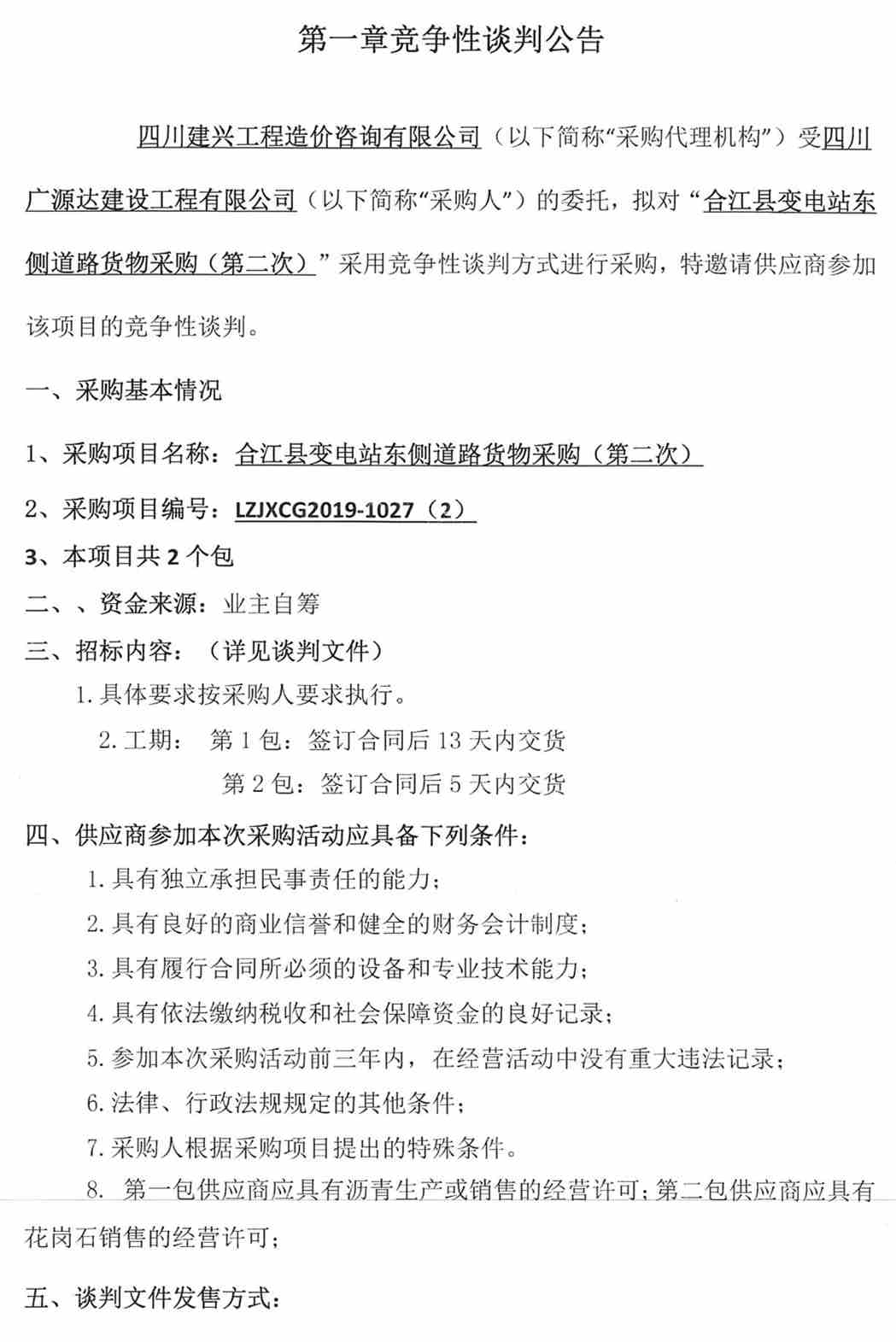 四川廣源達(dá)建筑工程有限公司合江縣變電站東側(cè)道路貨物采購(gòu)公告(第二次)