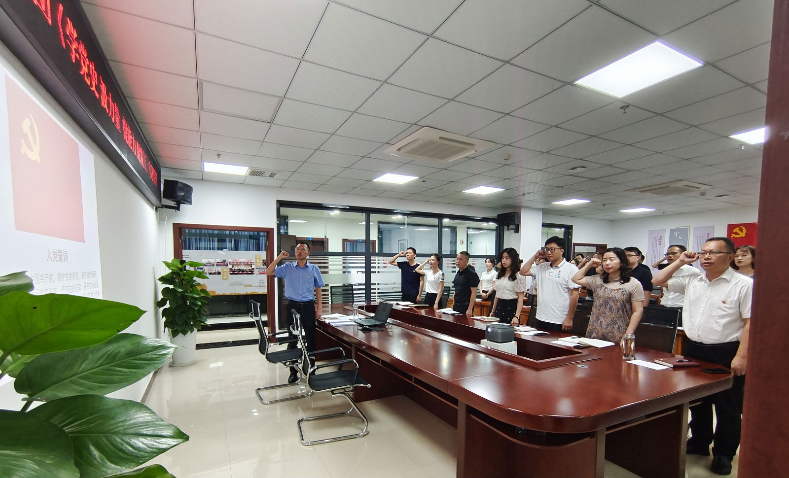 活 動 現(xiàn) 場 , 全 體 黨 員 面 向 黨 旗 , 胸 戴 黨 徽 , 斗 志 昂 揚 , 重 溫 了 入 黨誓詞。