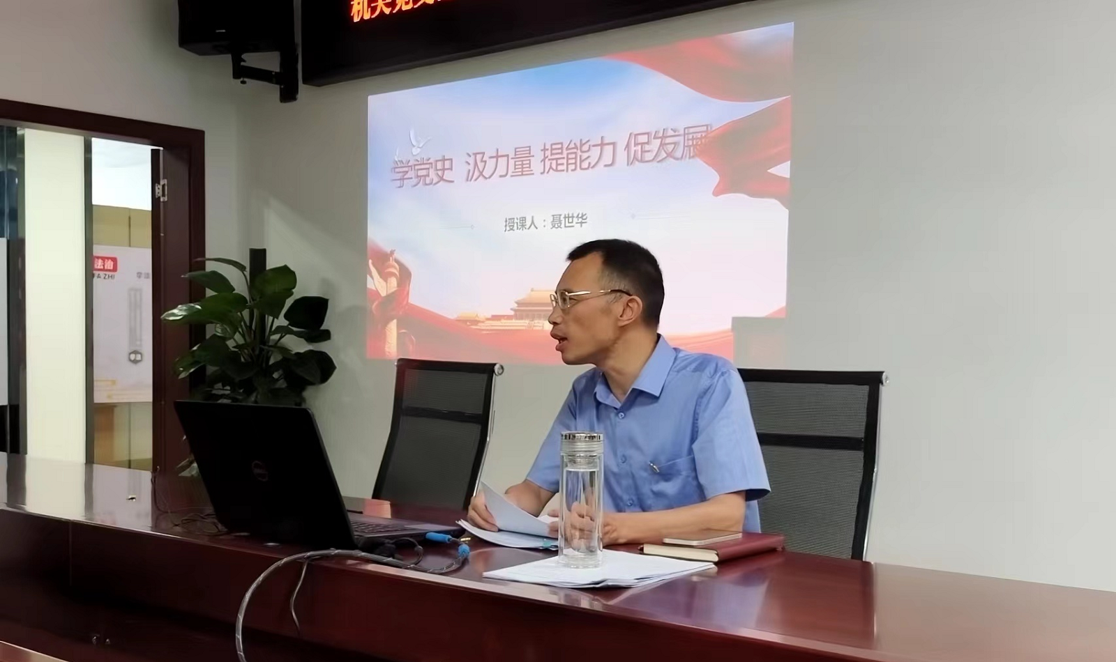6 月 30 日下午, 機關黨支部組織本部黨員和員工群眾開展慶祝中 國共產黨成立 101 周年主題黨日活動, 活動由黨支部書記聶仕華主持。