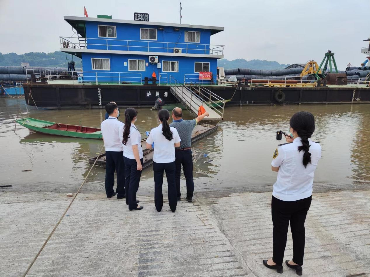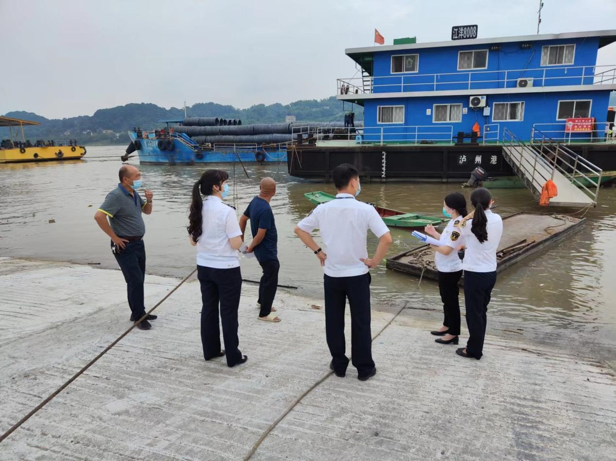 瀘州市交通運(yùn)輸綜合行政執(zhí)法支隊(duì)六大隊(duì)檢查國(guó)瑞港埠民用碼頭安全環(huán)保工作